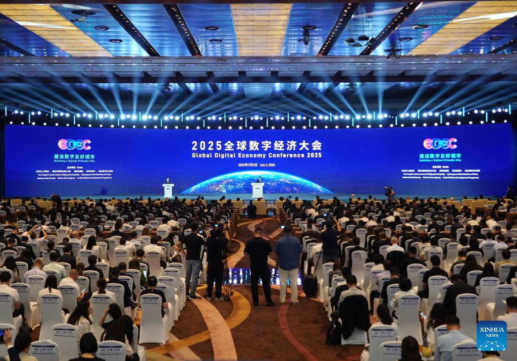 This photo taken on July 2, 2025 shows the opening ceremony of the 2025 Global Digital Economy Conference in Beijing, capital of China. With the theme "Building a Digital-Friendly City", the 2025 Global Digital Economy Conference opened here on Wednesday. (Xinhua/Zhang Chenlin)