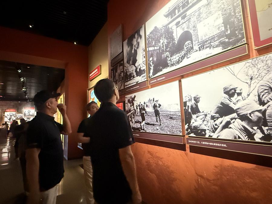 Visitors from central Asia visit the Yan'an Revolutionary Memorial Hall in Yan'an, northwest China's Shaanxi Province, July 13, 2025. (Photo by Miao Yumeng/Xinhua)