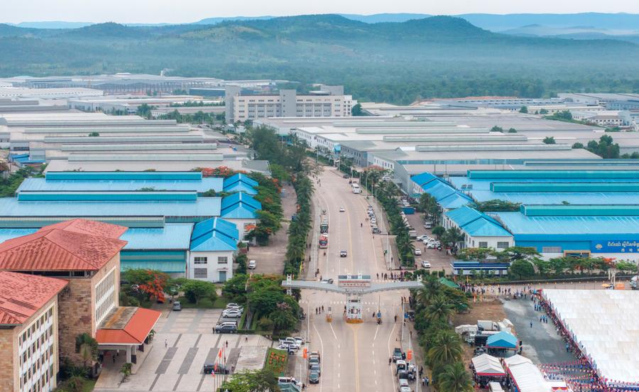 An aerial drone photo taken on May 22, 2025 shows the Sihanoukville Special Economy Zone (SSEZ) jointly ventured by Chinese and Cambodian companies in Sihanoukville, Cambodia. (Photo by Nitola/Xinhua)