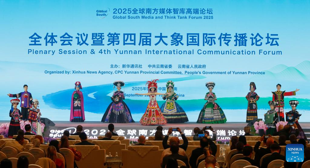 Performers perform during the 4th Yunnan International Communication Forum in Kunming, southwest China's Yunnan Province, Sept. 6, 2025. The 2025 Global South Media and Think Tank Forum, which opened Saturday, is co-hosted by Xinhua News Agency, the Communist Party of China Yunnan Provincial Committee and the People's Government of Yunnan Province. The plenary session of the forum and the 4th Yunnan International Communication Forum was held here on Saturday. (Xinhua/Chen Wei)