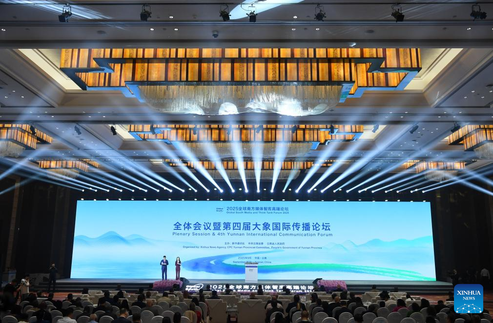 This photo taken on Sept. 6, 2025 shows a scene of the 4th Yunnan International Communication Forum in Kunming, southwest China's Yunnan Province. The 2025 Global South Media and Think Tank Forum, which opened Saturday, is co-hosted by Xinhua News Agency, the Communist Party of China Yunnan Provincial Committee and the People's Government of Yunnan Province. The plenary session of the forum and the 4th Yunnan International Communication Forum was held here on Saturday. (Xinhua/Jin Mamengni)