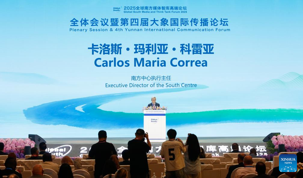 Carlos Maria Correa, executive director of the South Centre, speaks during the 4th Yunnan International Communication Forum in Kunming, southwest China's Yunnan Province, Sept. 6, 2025. The 2025 Global South Media and Think Tank Forum, which opened Saturday, is co-hosted by Xinhua News Agency, the Communist Party of China Yunnan Provincial Committee and the People's Government of Yunnan Province. The plenary session of the forum and the 4th Yunnan International Communication Forum was held here on Saturday. (Xinhua/Chen Wei)