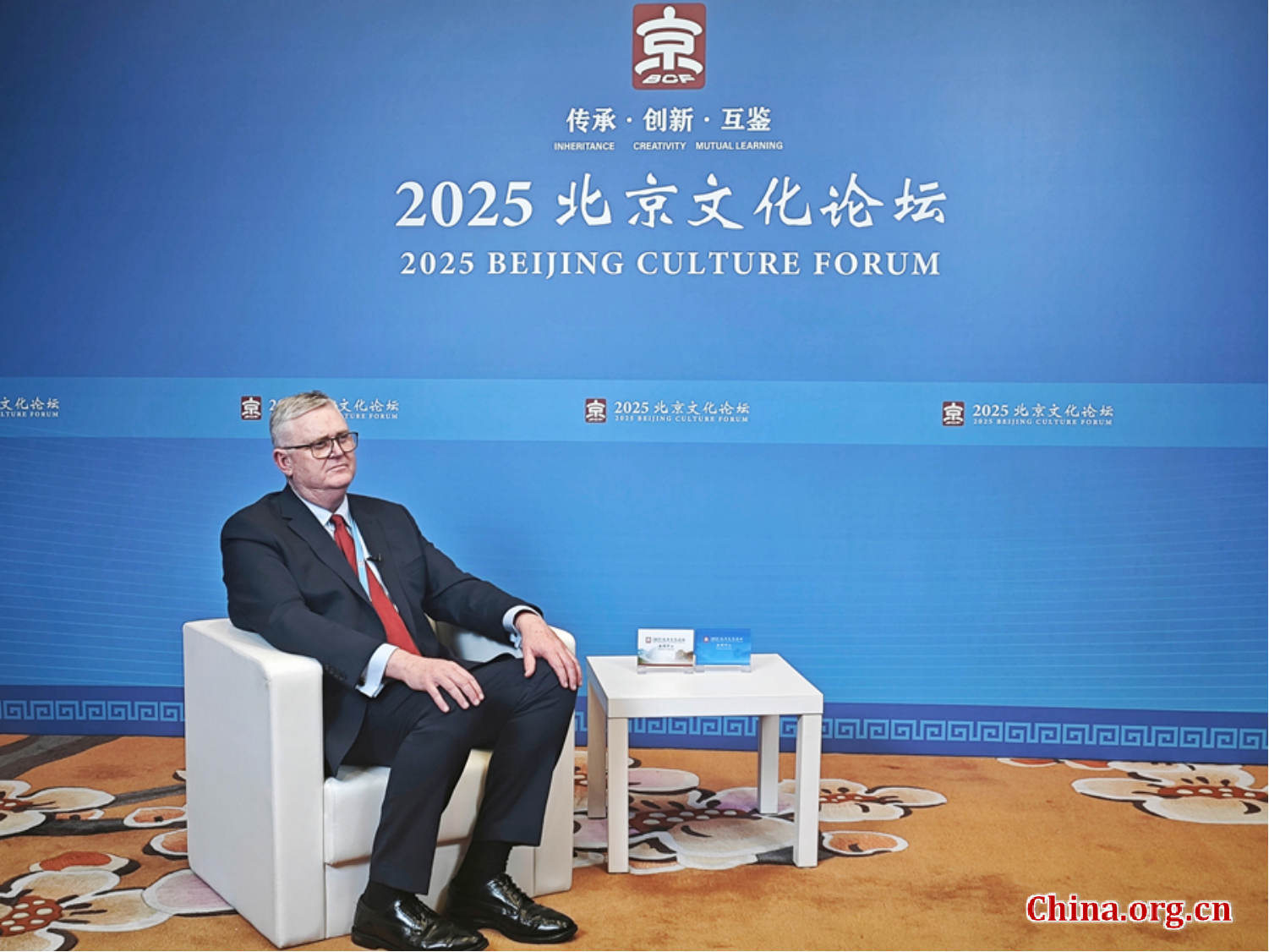 Australian sinologist Harold Weldon speaks during an interview at the 2025 Beijing Culture Forum in Beijing, Sept. 23, 2025. [Photo by Wang Yiming/China.org.cn]