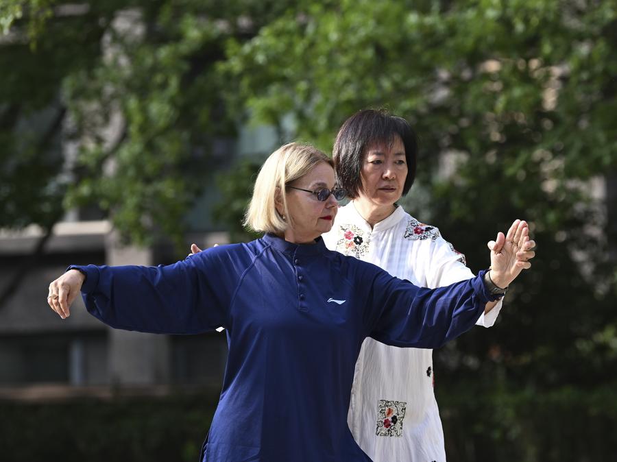 Vitomira Loncar learns Taichi after work in Xi'an, northwest China's Shaanxi Province, Sept. 25, 2025. (Xinhua/Zou Jingyi)