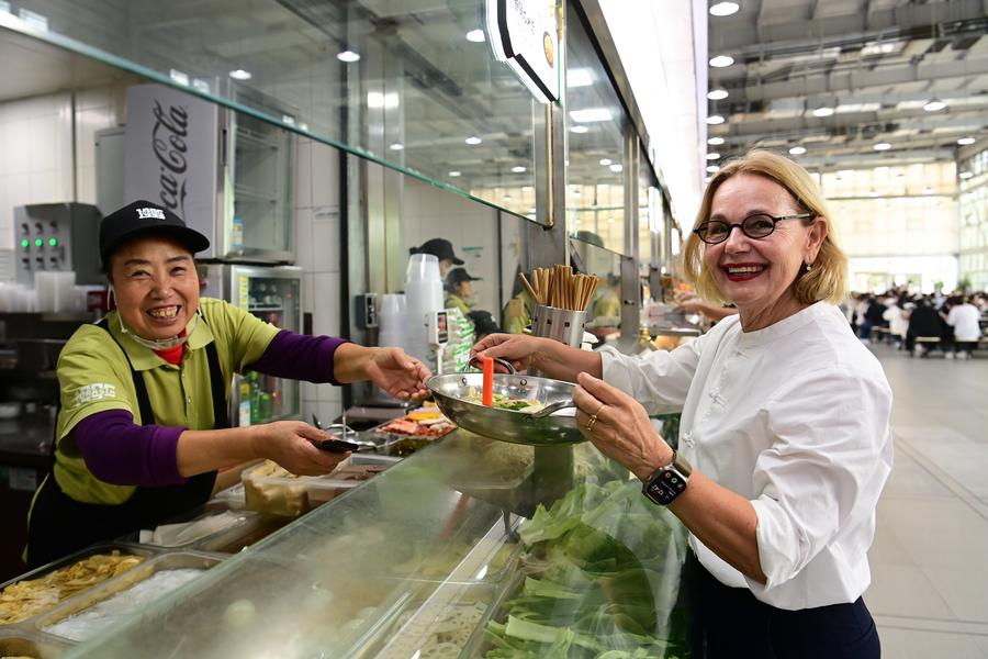 Vitomira Loncar buys a meal at a cafeteria of Xi'an Eurasia University in Xi'an, northwest China's Shaanxi Province, Sept. 25, 2025. (Xinhua/Zou Jingyi)
