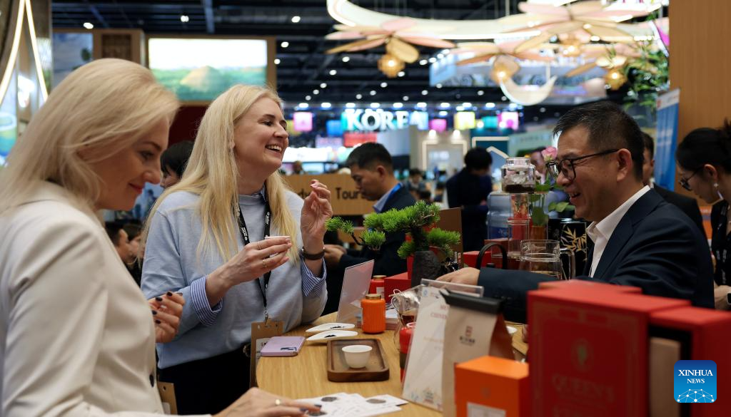 After the opening, exhibitors were busy engaging with visitors eager to experience Chinese tea and calligraphy, explore business opportunities, or take part in cultural quizzes.