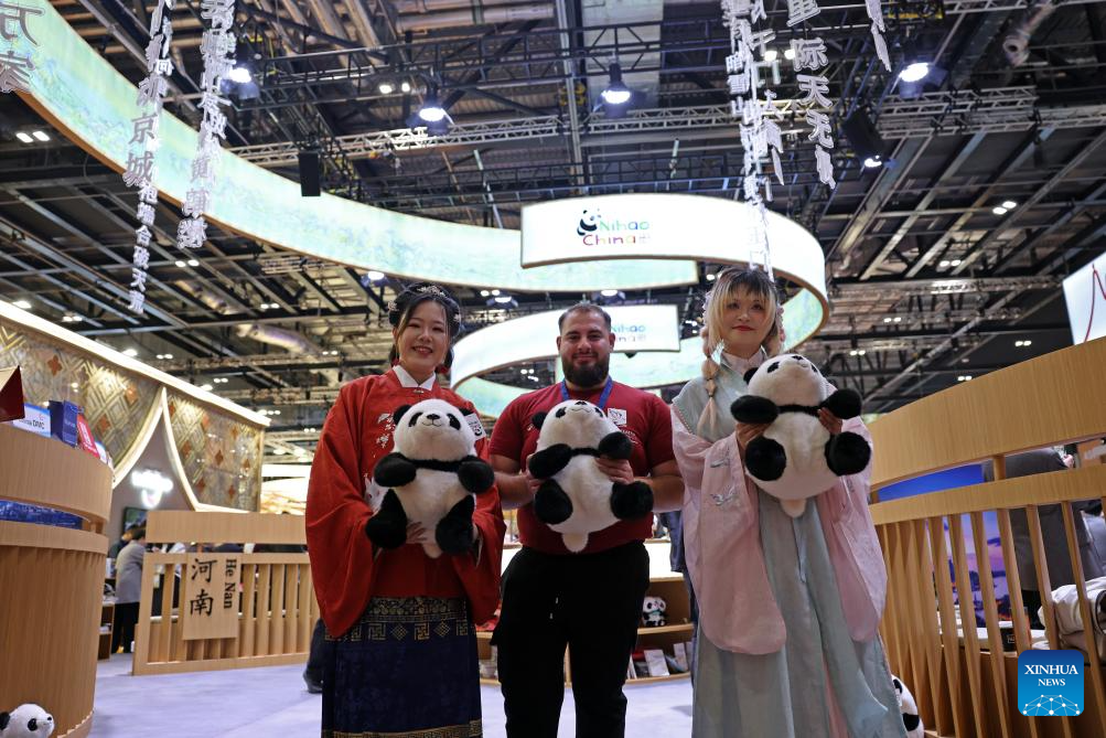 With a chubby cartoon panda waving in the middle of a bamboo-built gallery, surrounded by classic Chinese paintings and poems, the China pavilion is welcoming visitors from around the world at the 2025 edition of the World Travel Market (WTM) in London, one of the world's largest and most influential tourism exhibitions.