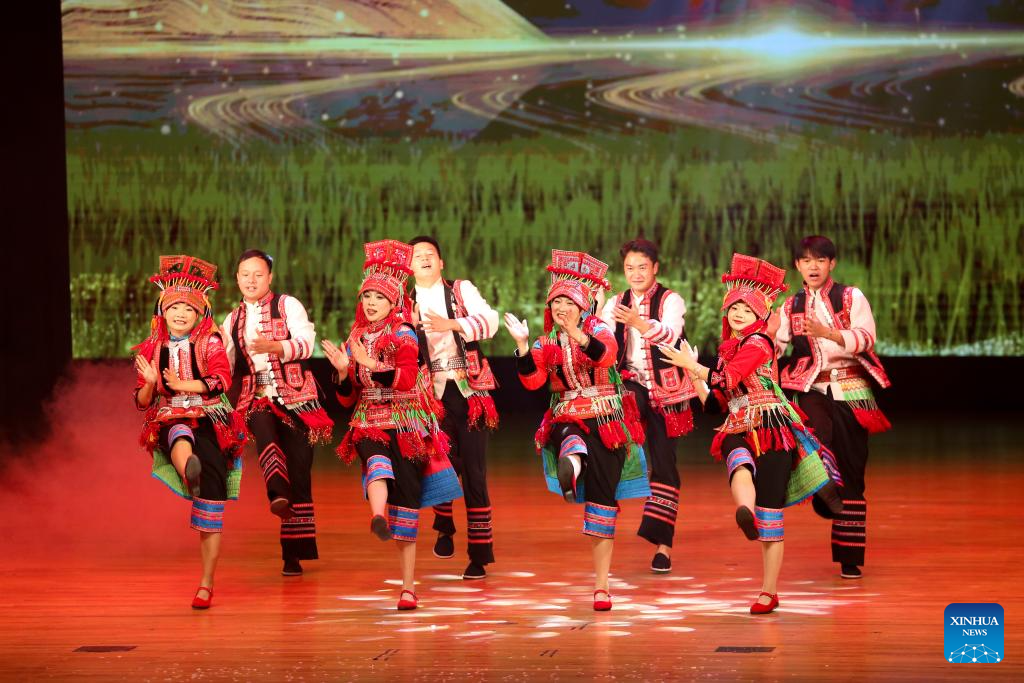 Artists perform during an event to celebrate the upcoming Chinese New Year in Yangon, Myanmar, Feb. 5, 2026. The Chinese Embassy in Myanmar hosted Chinese New Year celebrations at the National Theater in Yangon on Thursday and Friday. (Xinhua/Myo Kyaw Soe)