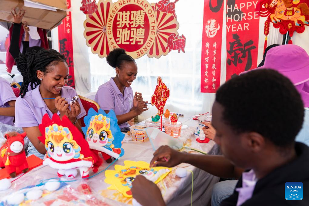 People make handicraft works at the 2026 Chinese New Year Gala in Nairobi, Kenya, Feb. 8, 2026. Kenya on Sunday celebrated the 2026 Chinese New Year Gala in Nairobi, bringing together dignitaries including senior government officials, diplomats, industry leaders, and hundreds of local and foreign visitors.