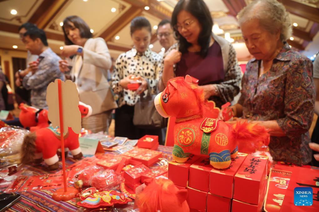 People view handicrafts during the "Harbors Tonight" event in Bandar Seri Begawan, capital of Brunei, on Feb. 7, 2026. The "Harbors Tonight" event was held in Bandar Seri Begawan, the capital of Brunei, on Saturday night, promoting cultural and people-to-people exchange between China's Yunnan Province and Brunei. (Xinhua/Li Meng)