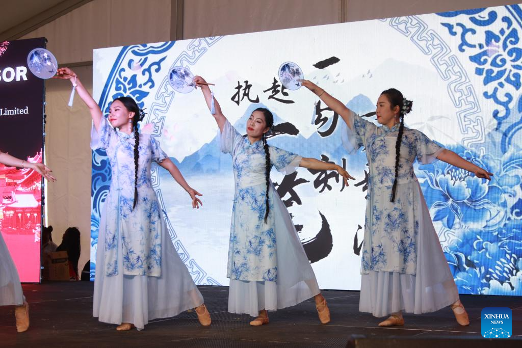 A Chinese dance is staged at a carnival to celebrate the Chinese New Year in Harare, Zimbabwe, on Feb. 7, 2026. Zimbabweans on Saturday were treated to Chinese cuisine and traditional performances at a carnival held in Harare, Zimbabwe's capital, to celebrate the upcoming Chinese New Year. (Photo by Tafara Mugwara/Xinhua)