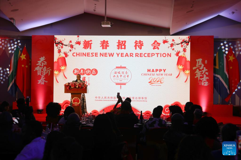 Ntombizanele Sifuba, a member of Free State Executive Council for sports, arts, culture and recreation, speaks at a reception to celebrate the upcoming Chinese New Year in Johannesburg, South Africa, Feb. 9, 2026. (Xinhua/Chen Wei)