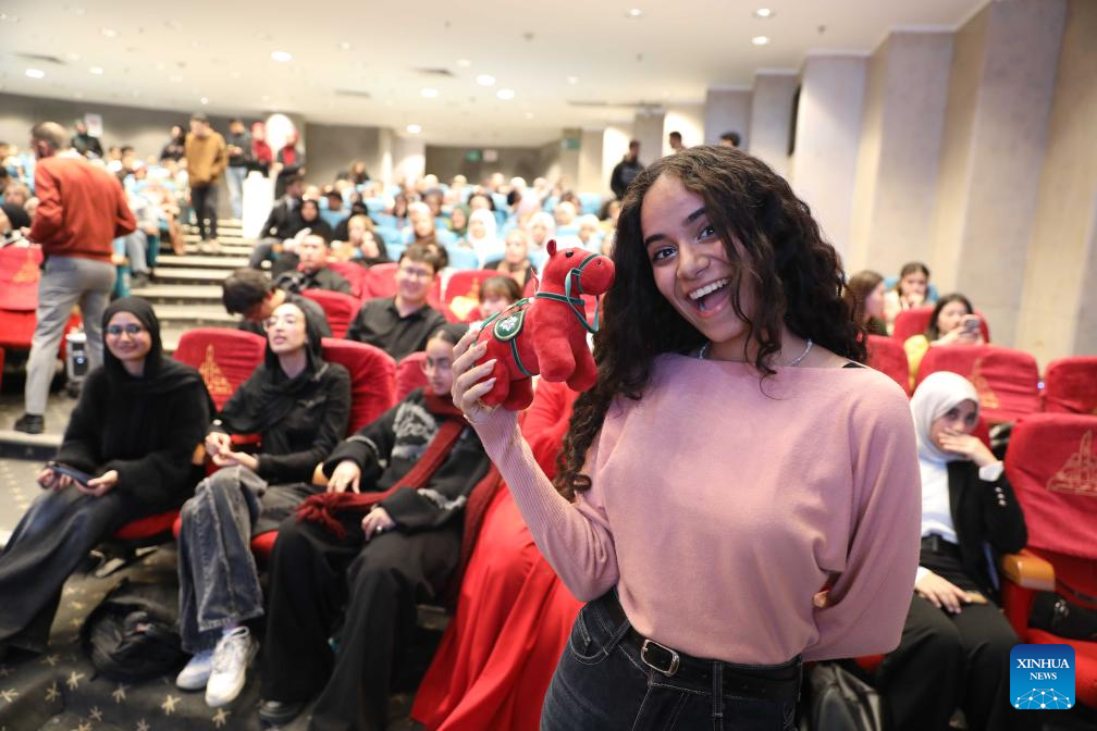 Egyptian Students celebrate the Chinese New Year at Ain Shams University in Cairo, Egypt, on Feb. 10, 2026. A Chinese New Year celebration for the Year of the Horse was held Tuesday at Ain Shams University in Cairo, bringing together Chinese teachers and Egyptian students for a festive showcase of cultural exchange and deepening friendship. (Xinhua/Ahmed Gomaa)