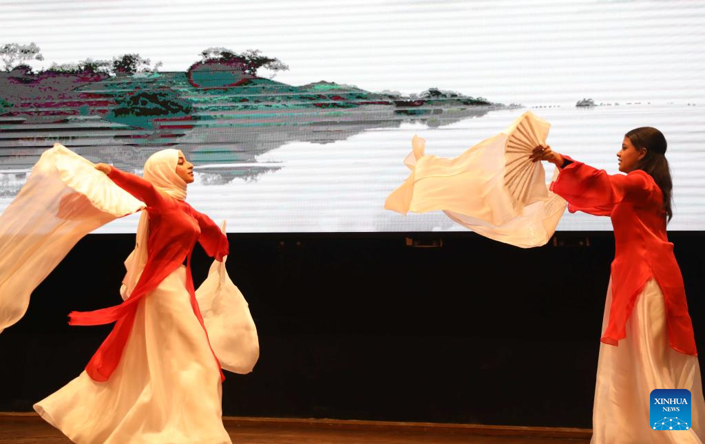 Egyptian Students perform during a Chinese New Year celebration at Ain Shams University in Cairo, Egypt, on Feb. 10, 2026. A Chinese New Year celebration for the Year of the Horse was held Tuesday at Ain Shams University in Cairo, bringing together Chinese teachers and Egyptian students for a festive showcase of cultural exchange and deepening friendship. (Xinhua/Ahmed Gomaa)