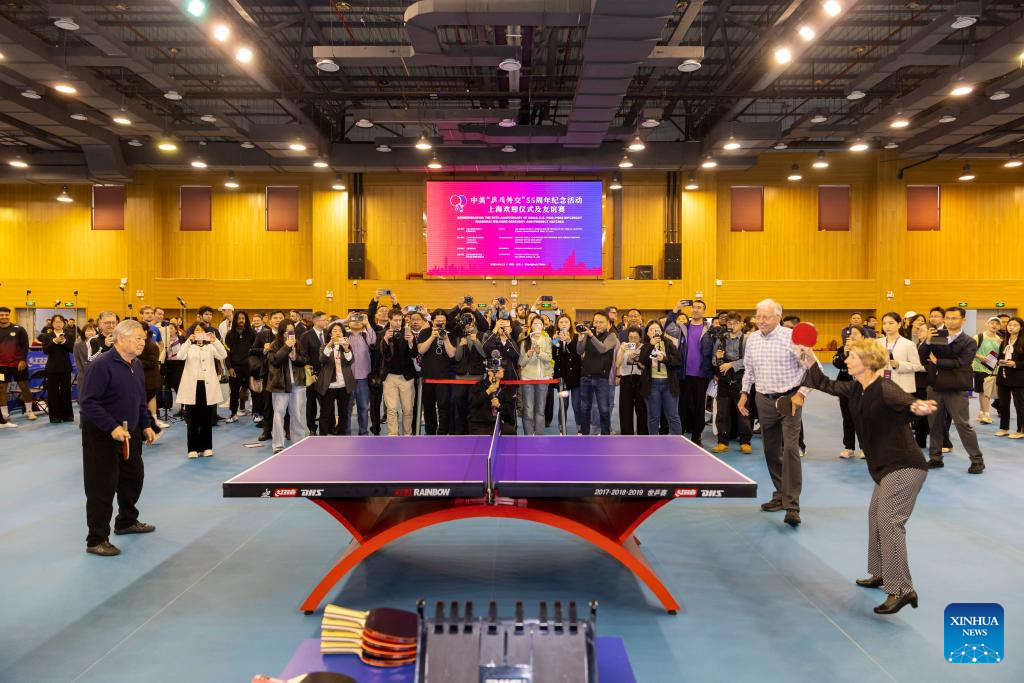 Representatives from China and the United States play in a table tennis friendly match at Shanghai University of Sport in Shanghai, east China, April 13, 2026. (Xinhua/Wang Xiang)