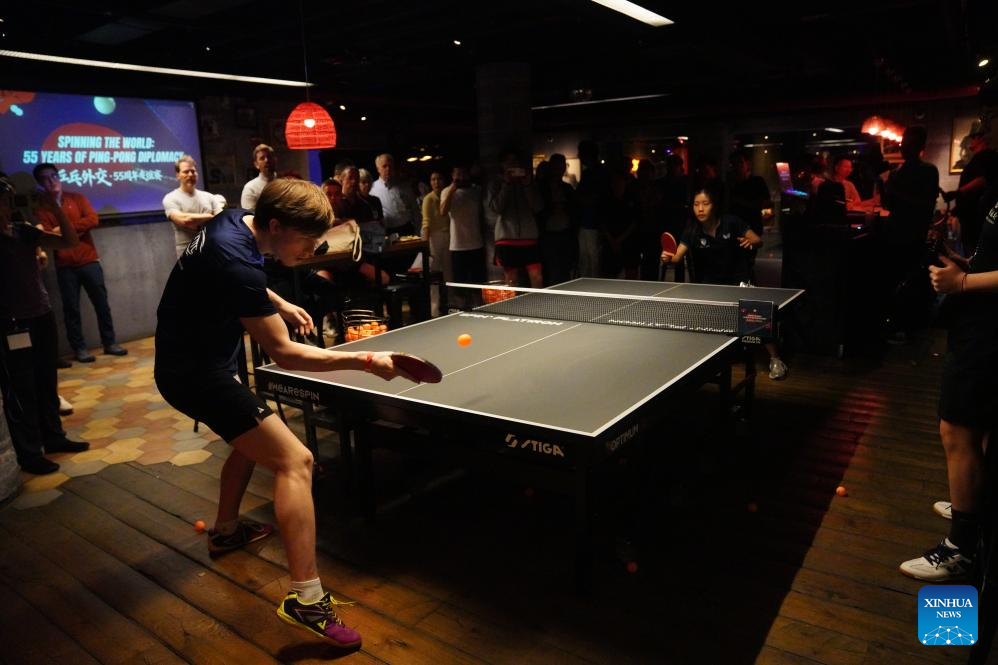 Chinese and U.S. table tennis athletes, university representatives and local enthusiasts gathered in New York on Friday to mark the 55th anniversary of "Ping-Pong Diplomacy," celebrating the enduring friendship fostered through sports exchanges.