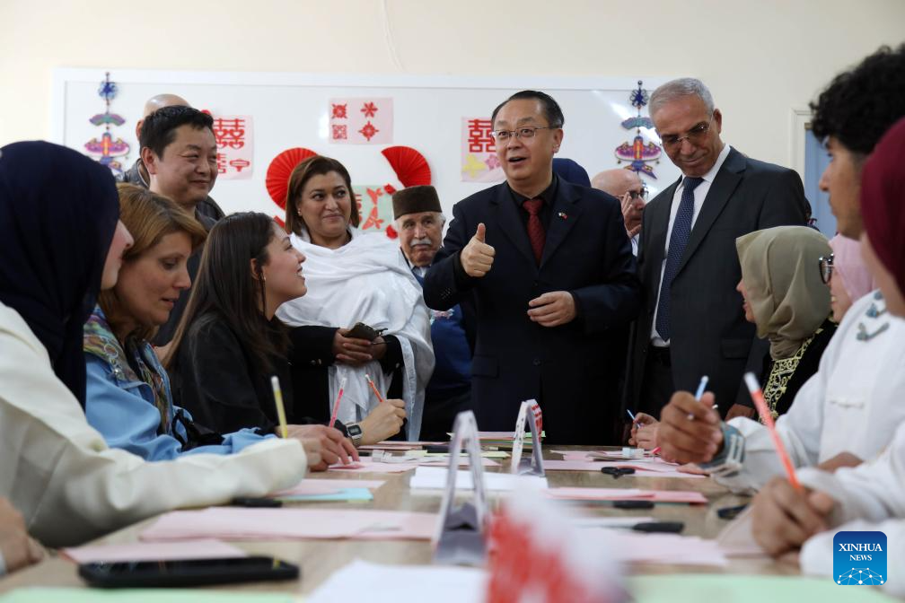 Dong Guangli (2nd R), Chinese Ambassador to Algeria attends a celebration marking the 2026 International Chinese Language Day in Algiers, Algeria, April 20, 2026. The celebration was held on Monday at the University of Algiers 2 in Algeria, attracting over 600 Algerian students and Chinese language enthusiasts. (Xinhua)