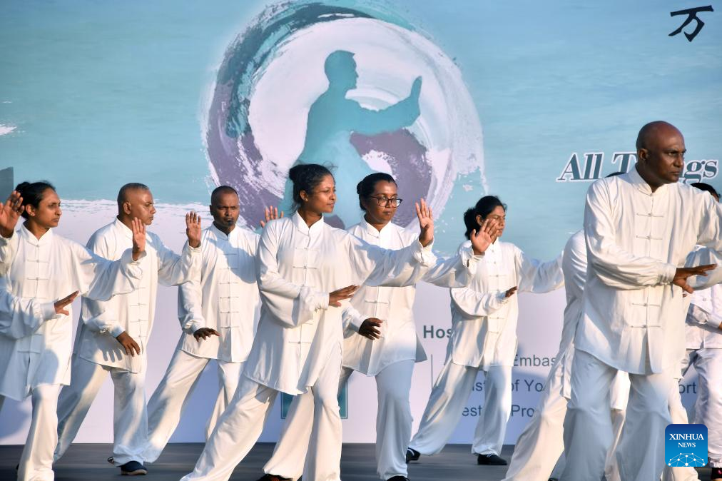Local enthusiasts perform Taiji at the "All Things in Harmony Taiji Promotion Event" in Colombo, Sri Lanka, April 25, 2026. (Photo by Ajith Perera/Xinhua)