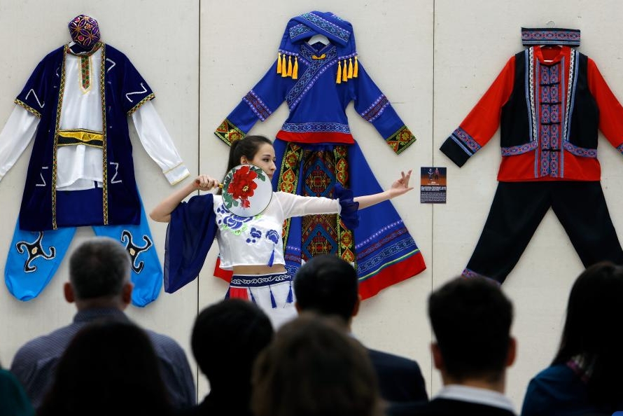 An exhibition showcasing traditional attire from China's ethnic minority groups opened on Tuesday at the Palace of the Parliament in Bucharest, attracting locals and tourists.