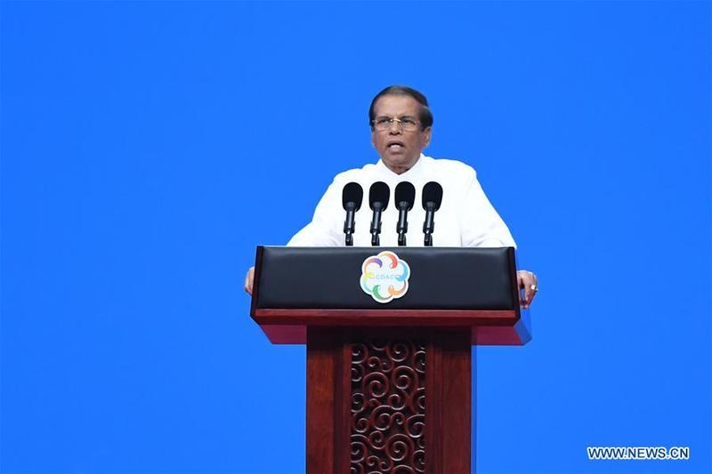 Sri Lankan President Maithripala Sirisena delivers a speech at the opening ceremony of the Conference on Dialogue of Asian Civilizations (CDAC) at the China National Convention Center in Beijing, capital of China, May 15, 2019. [Photo/Xinhua]