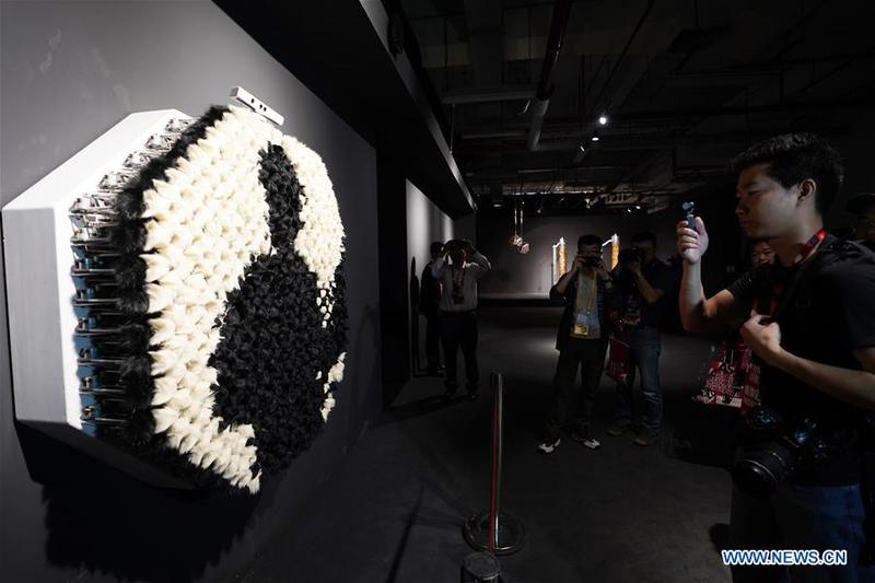 Visitors view an art work during the Asian Digital Art Exhibition held in Beijing, capital of China, May 16, 2019. The exhibition, part of the cultural activities of the Conference on Dialogue of Asian Civilizations, kicked off on Thursday. Works of 30 artists from 12 countries and regions are on show during the exhibition. [Photo/Xinhua]