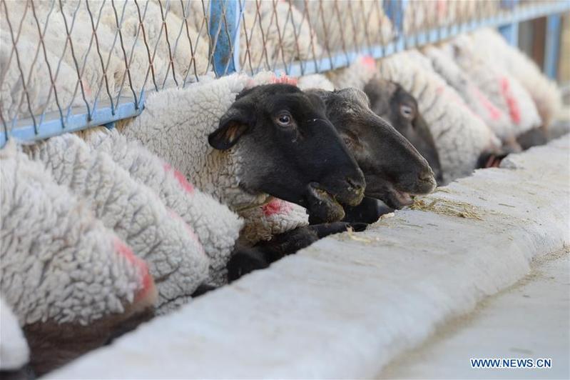 Photo taken on Oct. 19, 2020 shows a herd of Suffolk sheep at an animal husbandry company in Manas County, northwest China's Xinjiang Uygur Autonomous Region. Manas introduced Suffolk sheep in 1989. The county has accumulated experience on sheep breeding and improved the quality of its mutton products. In recent years, local people have promoted their high-quality mutton products in the market in Beijing and Shanghai via e-commerce platform to boost villagers' income. [Photo/Xinhua]