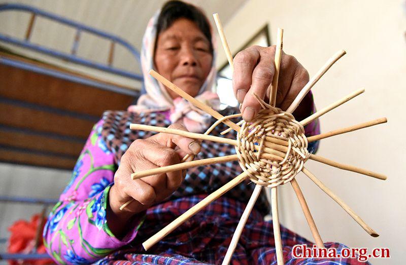 A local woman works at a wickerwork plant in Tashan town, Ganyu district of Lianyungang city in east China’s Jiangsu province, on Nov. 23, 2020. In recent years, combined with encouraging a revival of traditional handcraft skills, local authorities have made great efforts to promote and protect the provincial-level intangible cultural heritage – wickerwork. It has injected vitality into business across the town, especially through the online promotion and has helped locals shake off poverty.