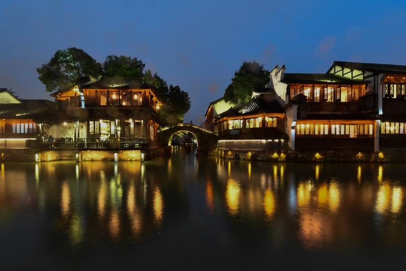 Photo taken on Nov. 22, 2020 shows a night view of Wuzhen in east China's Zhejiang province. [Photo/Xinhua]