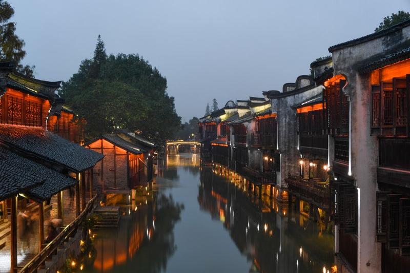 Photo taken on Nov. 22, 2020 shows a night view of Wuzhen in east China's Zhejiang province. [Photo/Xinhua]