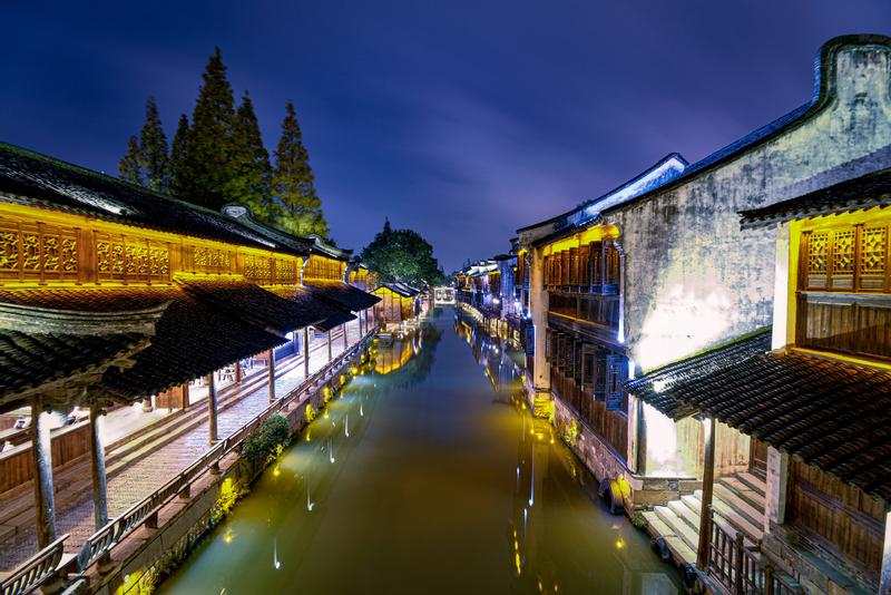 The night view of the West Scenic Zone in Wuzhen, Zhejiang province. [Photo/chinadaily.com.cn]