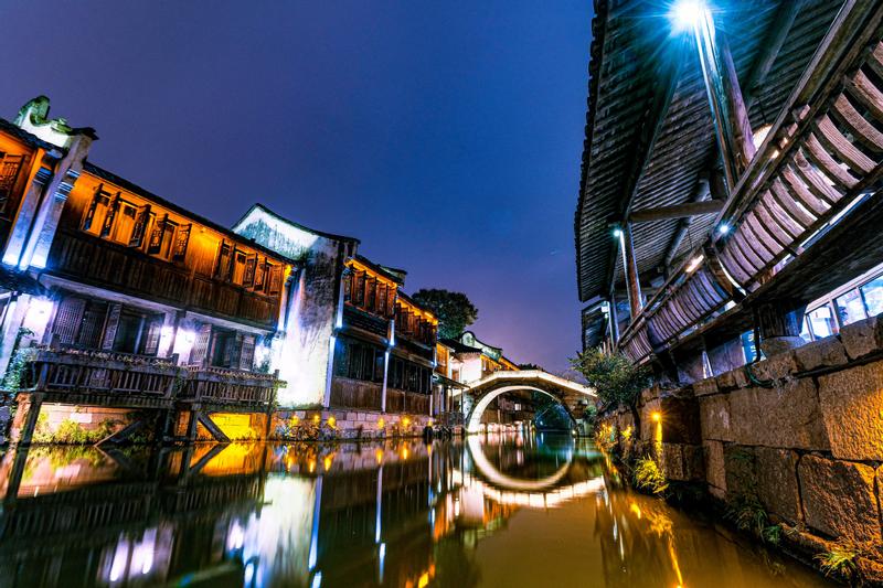 The night view of the West Scenic Zone in Wuzhen, Zhejiang province. [Photo/chinadaily.com.cn]