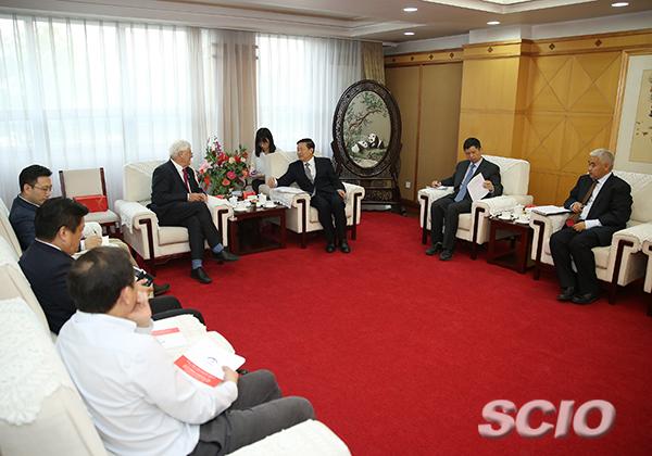 Guo Weimin meets with a delegation led by Richard Charkin, executive director of Bloomsbury Publishing, in Beijing on May 25, 2018. [Photo by Jiao Fei/China SCIO]