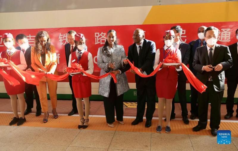 Representatives from China and Ethiopia participate in a ceremony during a seminar themed "Significance of the Addis Ababa-Djibouti Railway for the Horn of Africa" in Addis Ababa, Ethiopia, on Feb. 21, 2022. The Chinese-built Addis Ababa-Djibouti Standard Gauge Railway has won acclaim for facilitating regional integration and prosperity. (Xinhua)