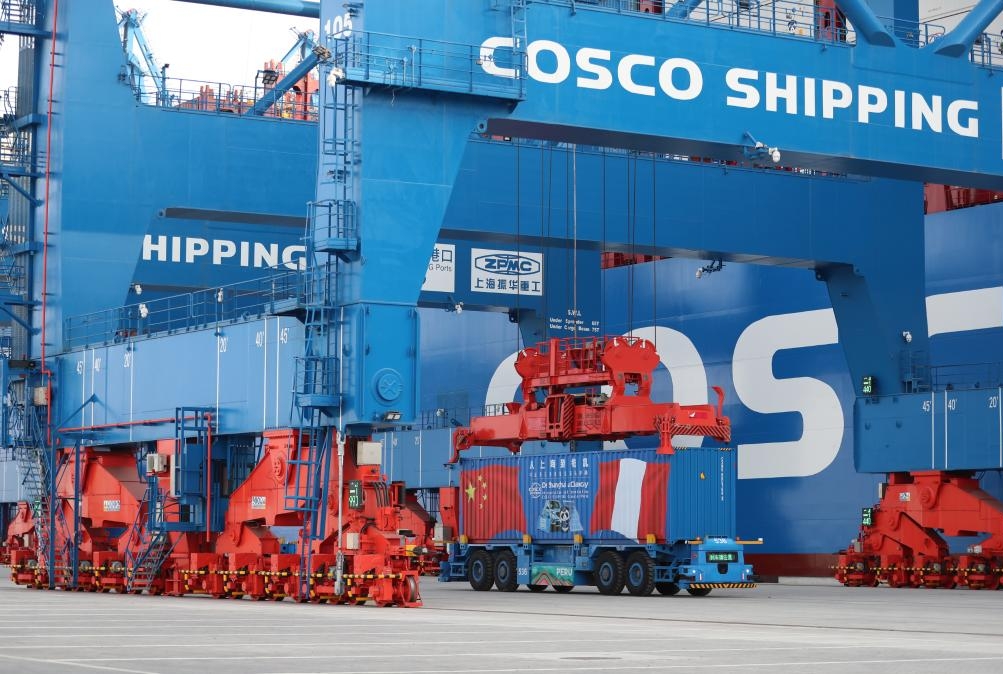 The "Chancay-Shanghai" shipping route handled 154,000 tonnes of import and export cargo valued at 3.97 billion yuan (about 559.37 million U.S. dollars) during the first three quarters of this year, fueling a 56.9 percent year-on-year surge in Shanghai's trade with Peru to 13.42 billion yuan, according to Shanghai Customs on Monday.