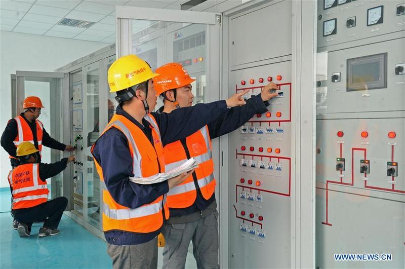 Electricians set the electric system for the Hangzhou-Huangshan high-speed railway in Tonglu County, east China's Zhejiang Province, April 1, 2018. The 265 kilometer railway links Hangzhou, capital of Zhejiang Province, with Huangshan City in Anhui Province. Passenger services on the railway will be opened later this year. [Photo/Xinhua]