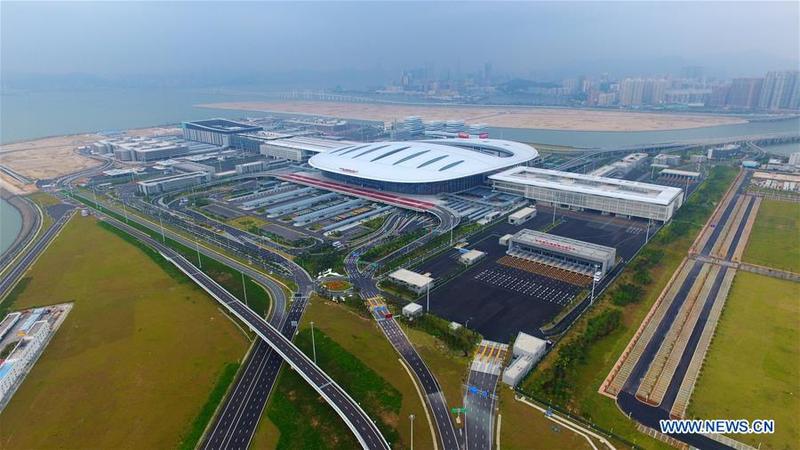 Aerial photo taken on Oct. 24, 2018 shows the Zhuhai Port of the Hong Kong-Zhuhai-Macao Bridge in Zhuhai, south China's Guangdong Province. The bridge officially opened to traffic at 9 a.m. on Oct. 24. [Photo/Xinhua]
