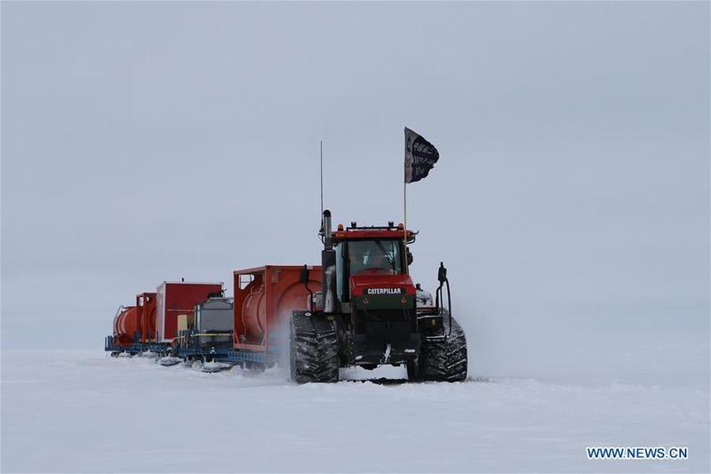 Vehicles of the Kunlun team of China's 35th Antarctic expedition run in Antarctica, Jan. 31, 2019. [Photo/Xinhua]