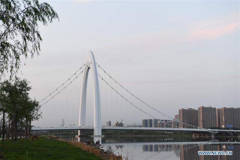 Photo taken on June 10, 2019 shows the Tongda Bridge over the Fenhe River in Taiyuan, north China's Shanxi Province. Three newly-built bridges over the Fenhe River have recently opened to the public in Taiyuan. [Photo/Xinhua]