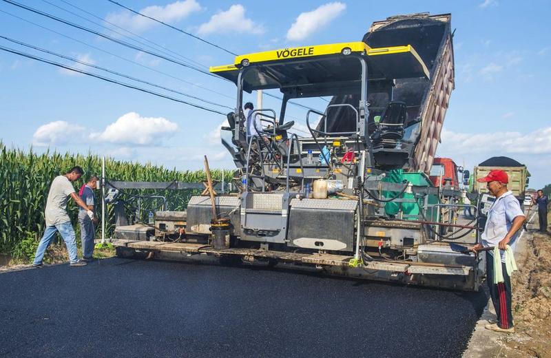 People work at the construction site of a rural road in Nanshi village of Zaoqiang county, north China's Hebei province, Aug. 15, 2019. [Photo/Xinhua]