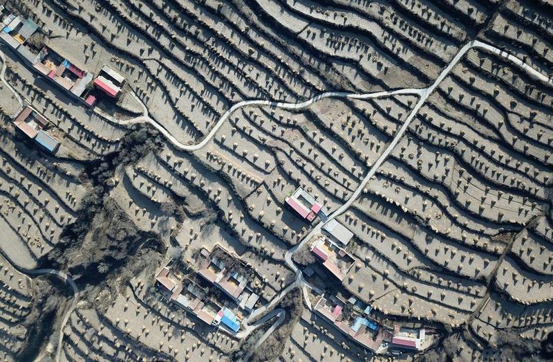 Aerial photo taken on Nov. 15, 2019 shows rural roads in Kangping village of Guanghe county, northwest China's Gansu province. [Photo/Xinhua]
