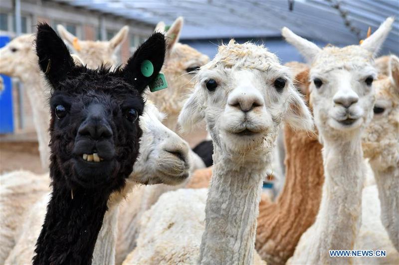 Alpacas are seen at the alpaca breeding base in Yangqu County of north China's Shanxi Province, July 10, 2018. Liu Xuerong, a poverty-stricken farmer from Pingli Village of Yangqu County, has never dreamed of getting rich with a flock of cute alpacas. In 2014, as a breeding base of a thousand alpacas was built, Liu started embarking on cultivating those Australia-originated alpacas. The breeding base makes a profit from cub breeding, woolen products and tourism of alpaca watching. Liu accordingly earns a monthly wage of 3000 yuan (US$449). Yet in the past, Liu's family relied on growing agricultural products such as corns and potatoes for their livelihoods, with an annual salary of 6000 yuan (US$897). More than 30 poverty-stricken households in Pingli Village have got rid of poverty, with a monthly wage raise of 2000 yuan (US$299). In the next few years, the alpaca breeding base will further expand the reproduction scale, while perfecting management mode, to help promote the poverty relief work. [Photo/Xinhua]