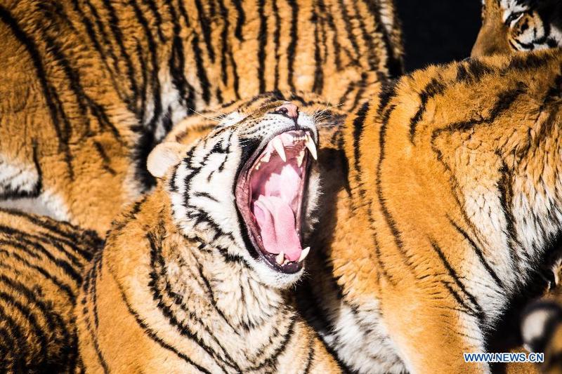 Siberian tigers are seen during wild training in the Siberian Tiger Park in Harbin, capital of northeast China's Heilongjiang Province, Jan. 28, 2018. [Photo/Xinhua]