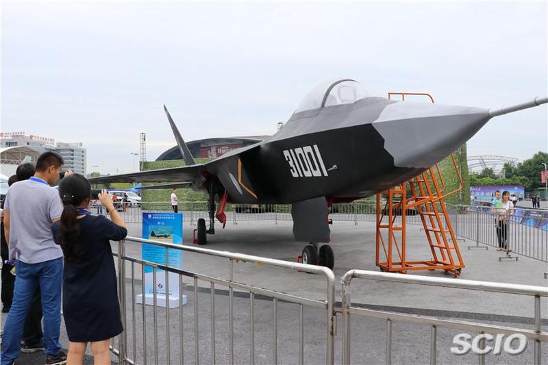Visitors take photos of a J-31 fighter jet during the Sixth China (Mianyang) Science & Technology City International High-Tech Expo in the city of Mianyang, southwest China's Sichuan province, on Sept. 6, 2018. [Photo by Zheng Chengqiong/China SCIO]