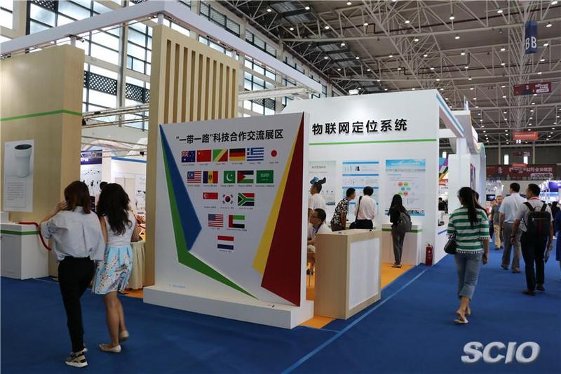 People visit the exhibition area of Belt and Road sci-tech cooperation and exchanges during the Sixth China (Mianyang) Science & Technology City International High-Tech Expo in the city of Mianyang, southwest China's Sichuan province, on Sept. 6, 2018. [Photo by Zheng Chengqiong/China SCIO]