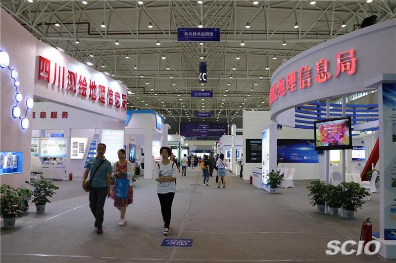 People visit the BeiDou Technology Application Pavilion during the Sixth China (Mianyang) Science & Technology City International High-Tech Expo in the city of Mianyang, southwest China's Sichuan province, on Sept. 6, 2018. [Photo by Zheng Chengqiong/China SCIO]