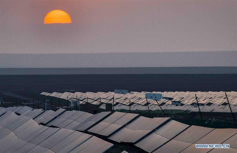 Photo taken on Sept. 18, 2018 shows a PV power plant in Turpan, northwest China's Xinjiang Uygur Autonomous Region. Xinjiang has seen a surge in the electricity generation from clean energy. According to State Grid Xinjiang Electric Power Co., Ltd., wind and solar power generated 27.81 billion and 9.07 billion kilowatt hours (kwh) of electricity, respectively, in the first nine months of 2018 in the region. With abundant wind and solar resources, Xinjiang is a pioneer in using new energy in China, with installed new-energy capacity having exceeded 27 million kilowatts so far. [Photo/Xinhua]
