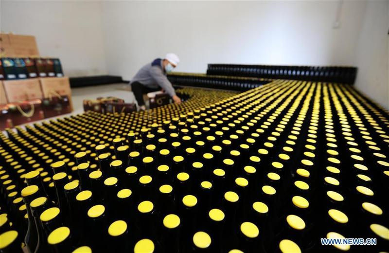 A worker packs the newly made vinegar at a vinegar plant in Chishui, southwest China's Guizhou province, Nov. 18, 2018. Chishui maintained a traditional method to make vinegar with over 30 process steps. [Photo/Xinhua]