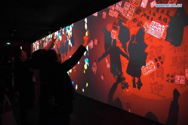 People visit the digital immersive experience exhibition to be held at the Palace Museum, also known as the Forbidden City, in Beijing, capital of China, Jan. 21, 2019. As a part of the exhibition of "Celebrating the Spring Festival in the Forbidden City", the digital exhibition featuring Spring Festival cultural elements will be held on Jan. 23. [Photo/Xinhua]