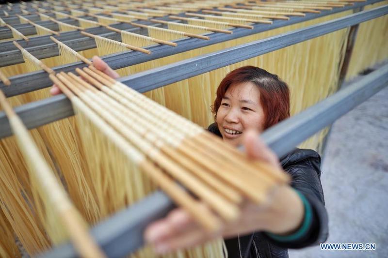 A villager makes noodles at Huamao Village, Fengxiang Township, Zunyi City, southwest China's Guizhou Province, April 13, 2020. Guizhou, which used to be a provincial-level region with the biggest population of poor people, has lifted more than 9 million people out of poverty since 2012. (Xinhua/Liu Xu)