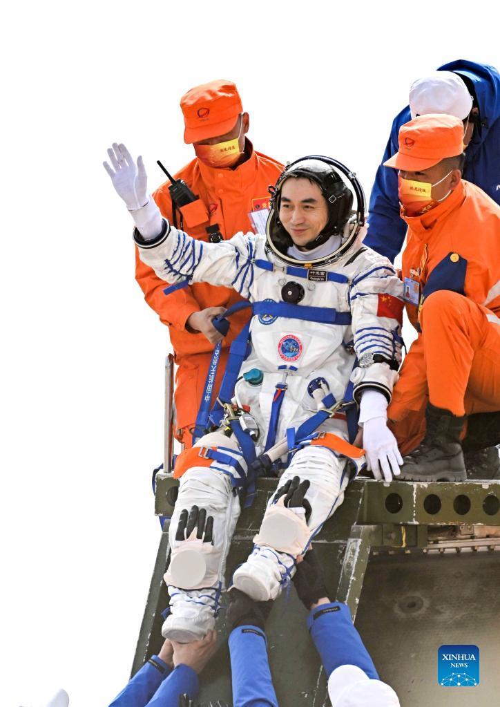 Three Chinese astronauts of the Shenzhou-13 manned spaceship have completed their six-month space station mission and returned to Earth safely on Saturday.
